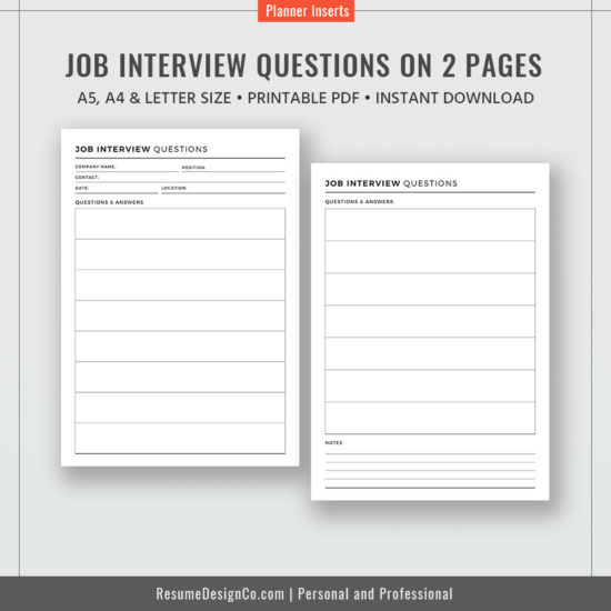 Add to cart Job Interview Questions, Letter Size, A4, A5, Filofax A5, Planner Design, Planner Inserts, Planner Refills, Planner Printable, Planner Pages, Instant Download $3.00