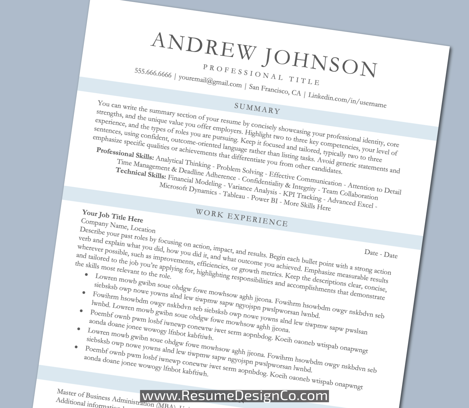 – All designs are copyright and original to ResumeDesignCo.