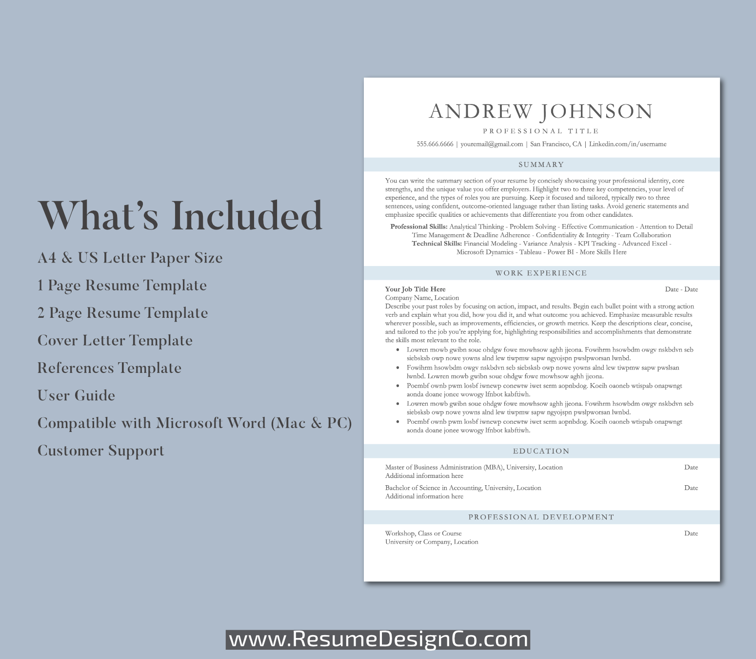 www.ResumeDesignCo.com | Personal and Professional | Resume Templates and Planner Inserts