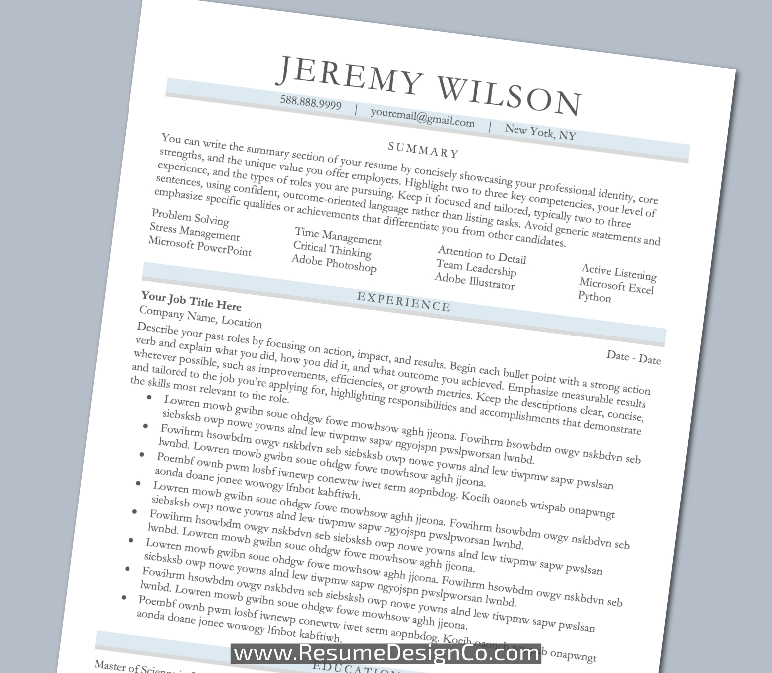 – www.ResumeDesignCo.com | Personal and Professional | Resume Templates and Planner Inserts