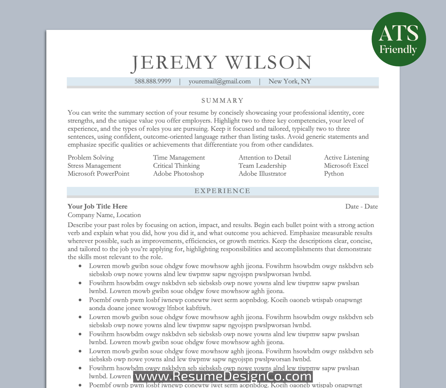 ATS Friendly Resume Template / CV Template for MS Word, Professional Resume Template, Simple Resume Design, ATS Resume Format: Jeremy Resume