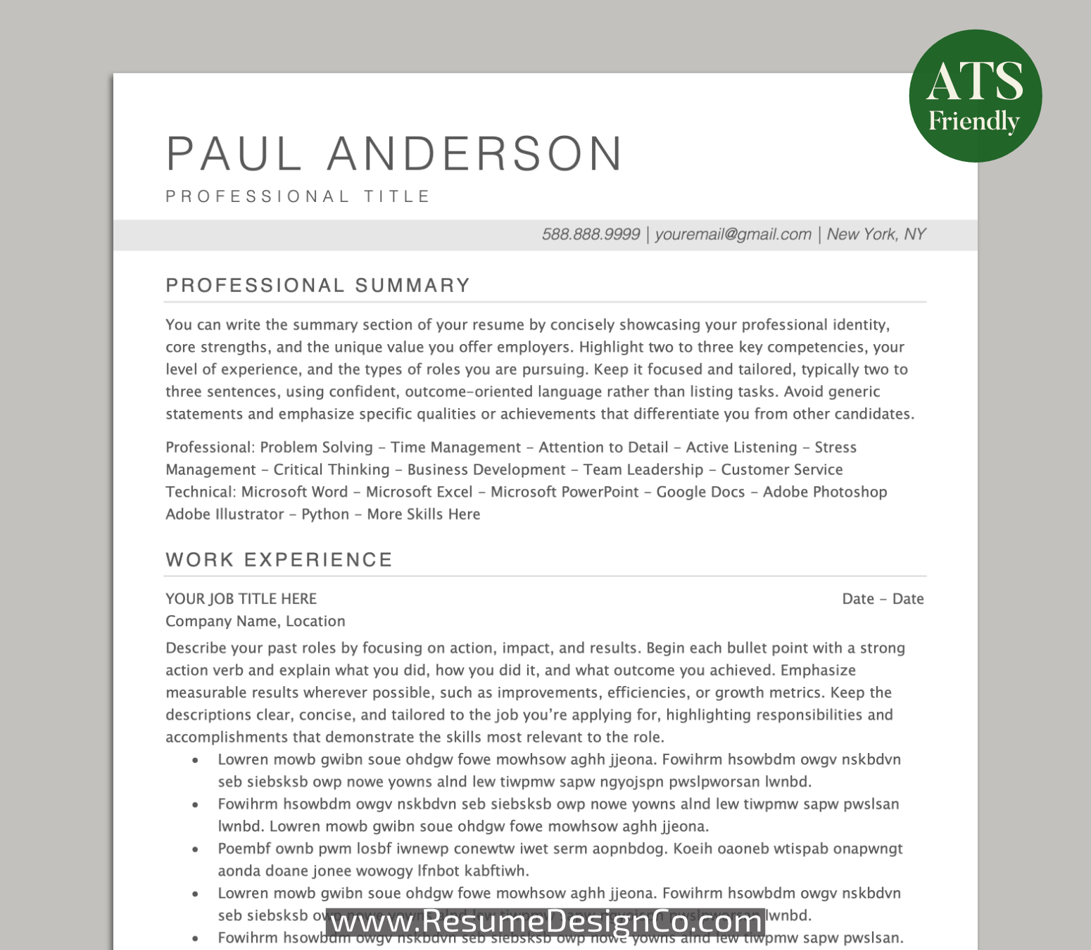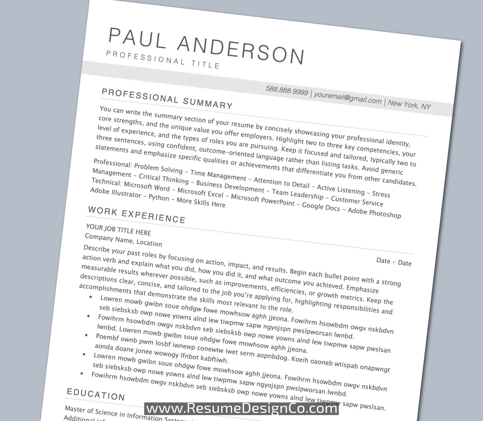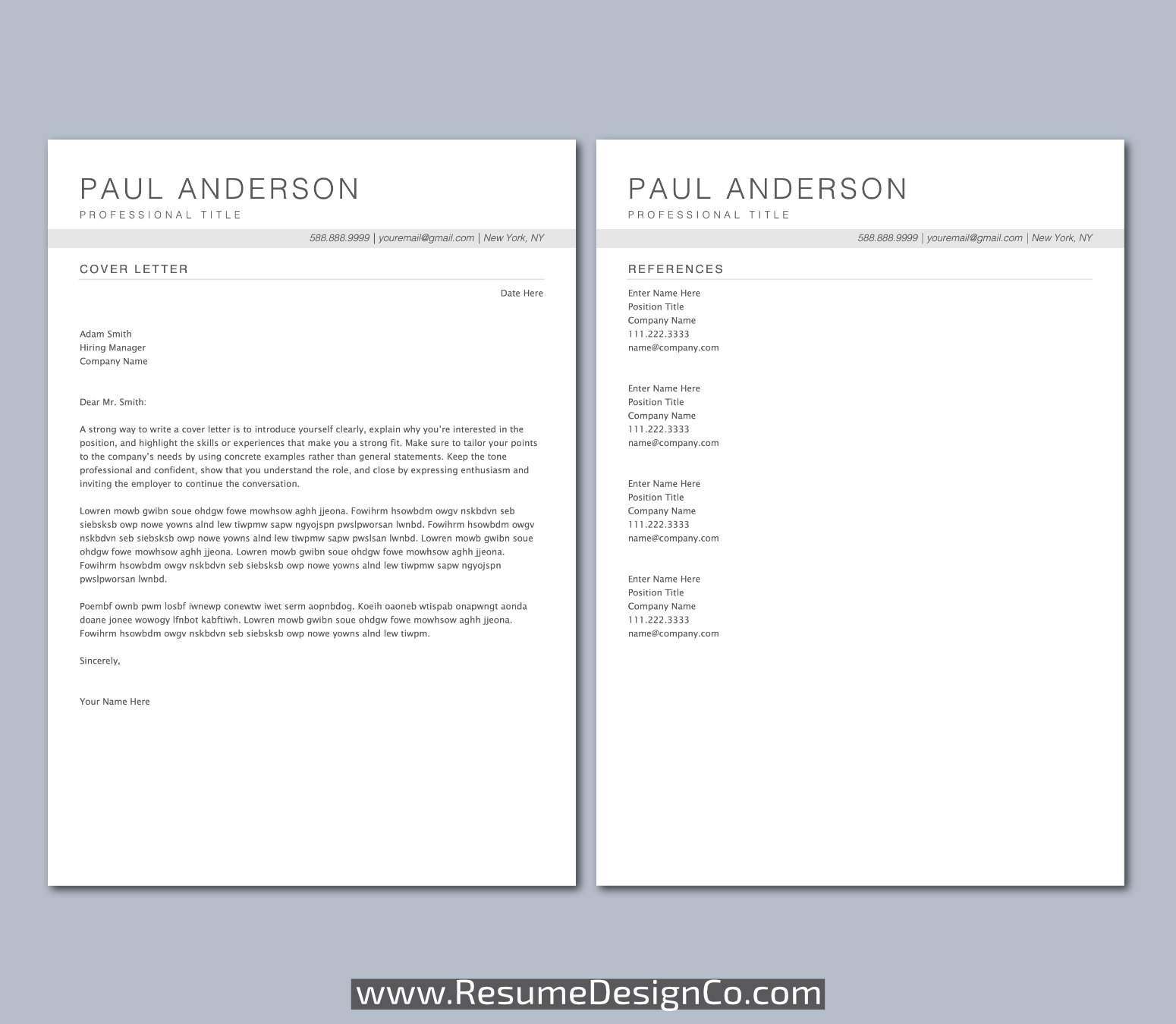 – All designs are copyright and original to ResumeDesignCo.