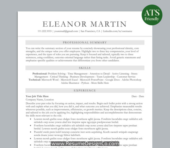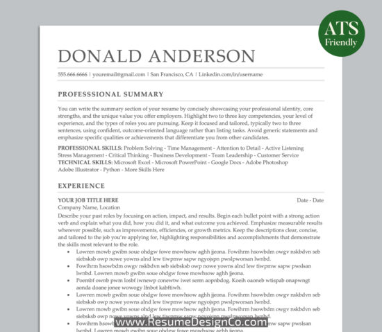– www.ResumeDesignCo.com | Personal and Professional | Resume Templates and Planner Inserts