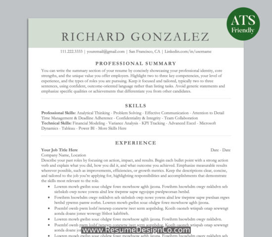 – 2 Page Resume Template in MS Office .docx Format.