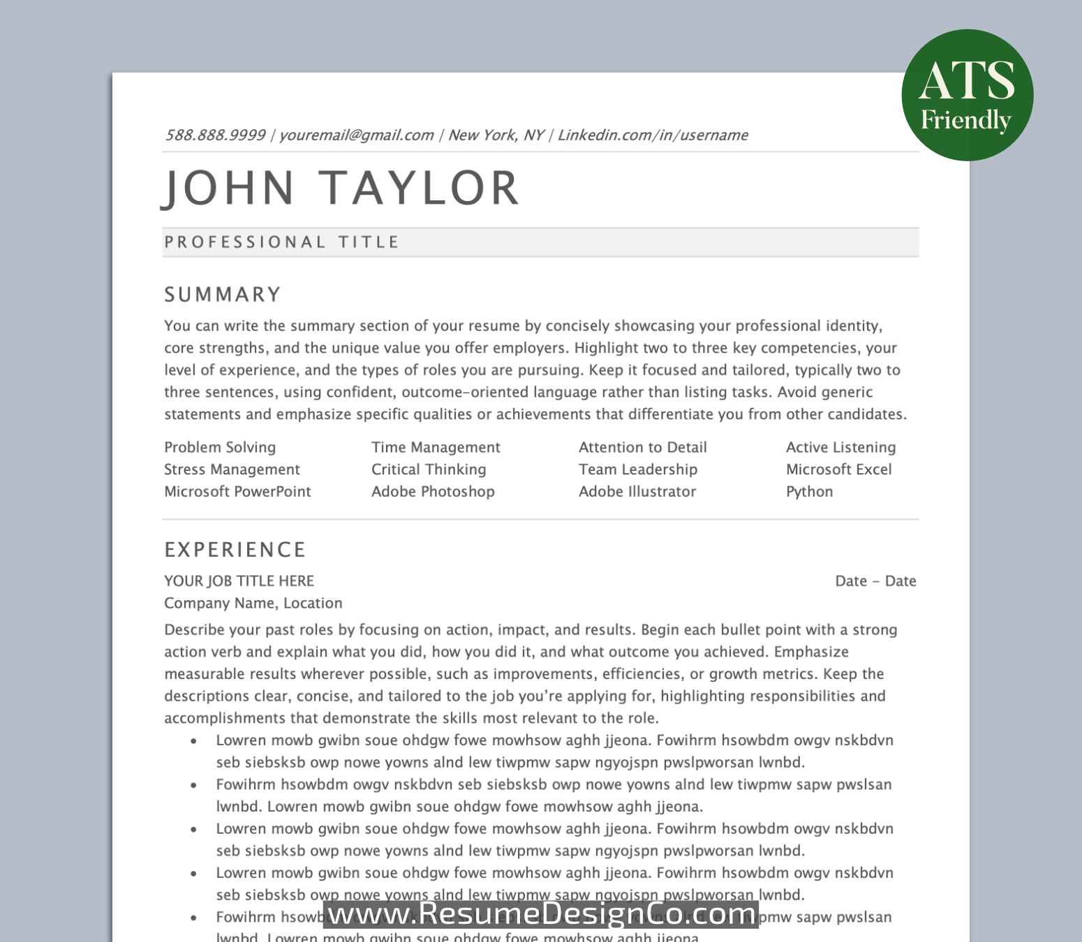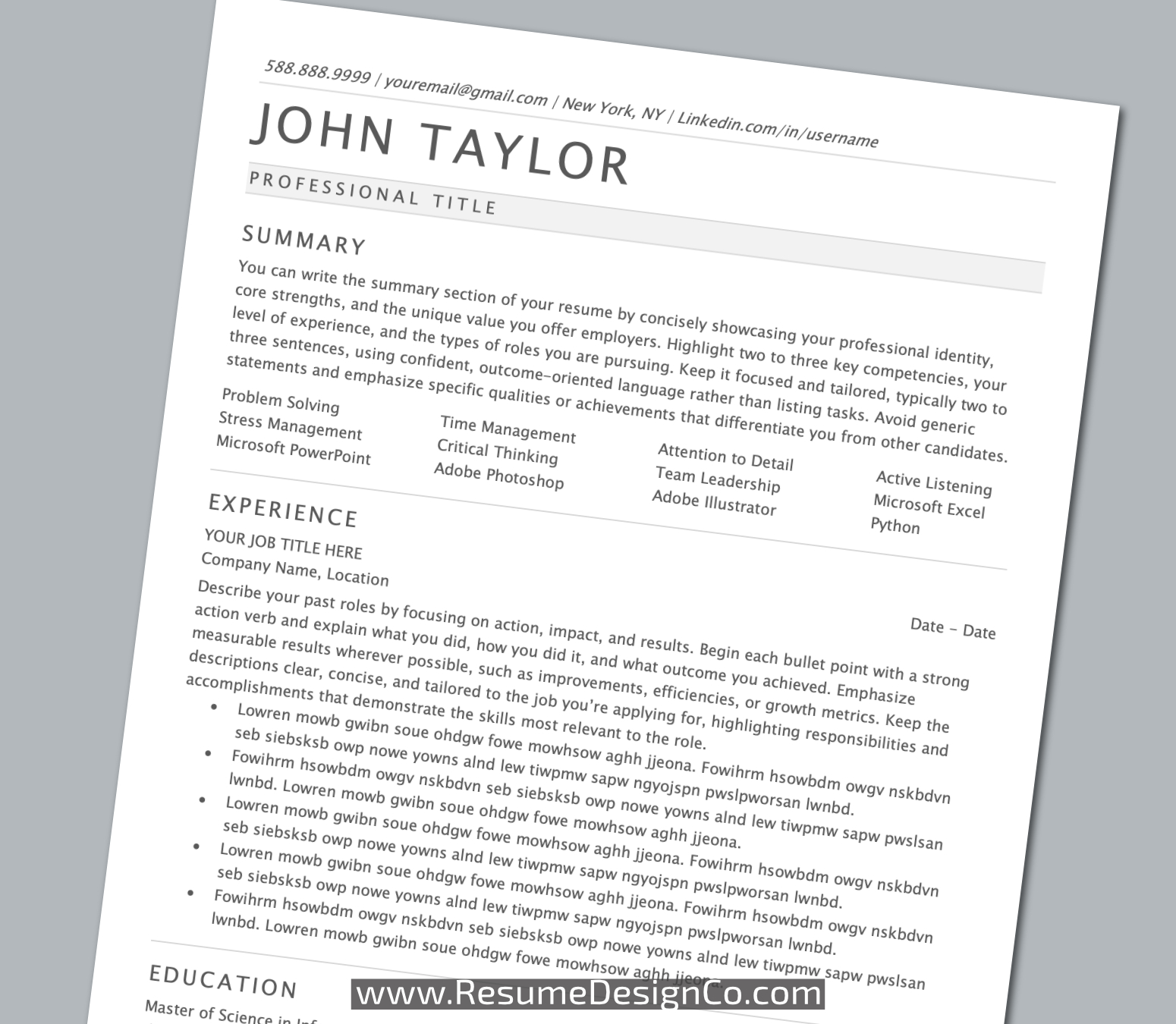 – All designs are copyright and original to ResumeDesignCo.