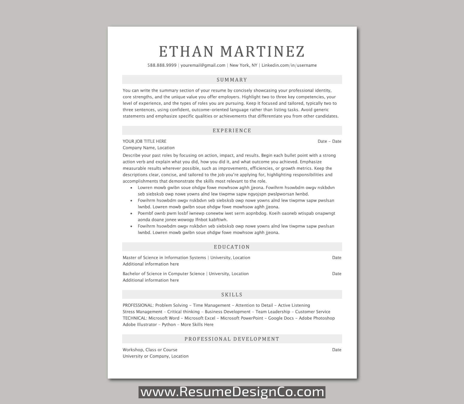 www.ResumeDesignCo.com | Personal and Professional | Resume Templates and Planner Inserts