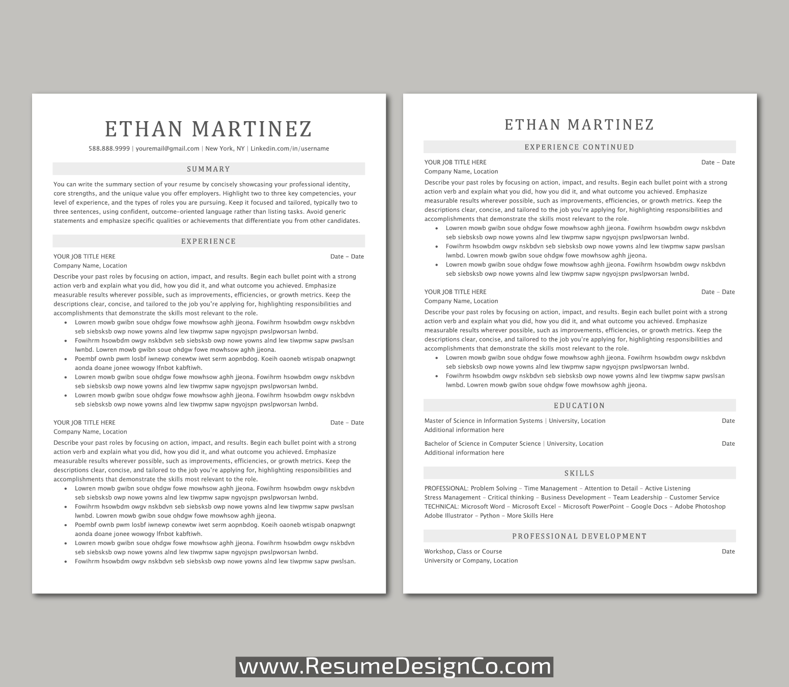 – 2 Page Resume Template in MS Office .docx Format.