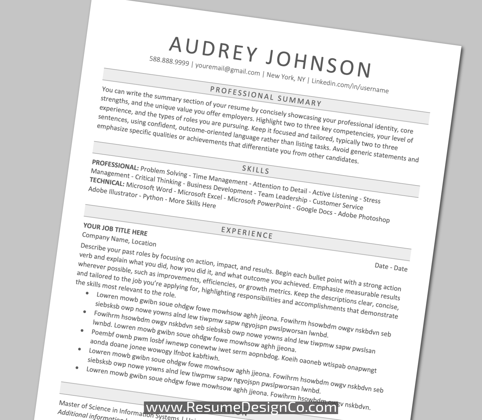 – All designs are copyright and original to ResumeDesignCo.