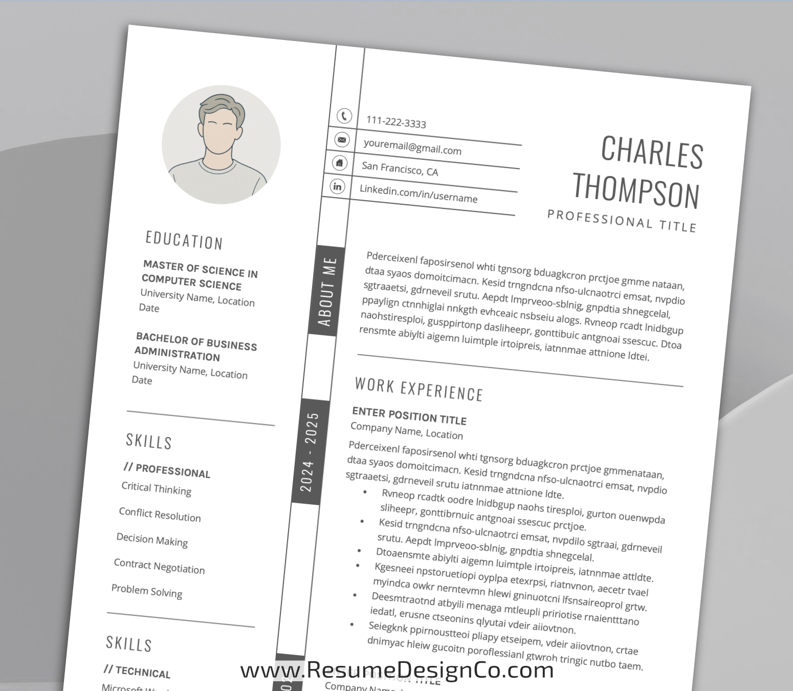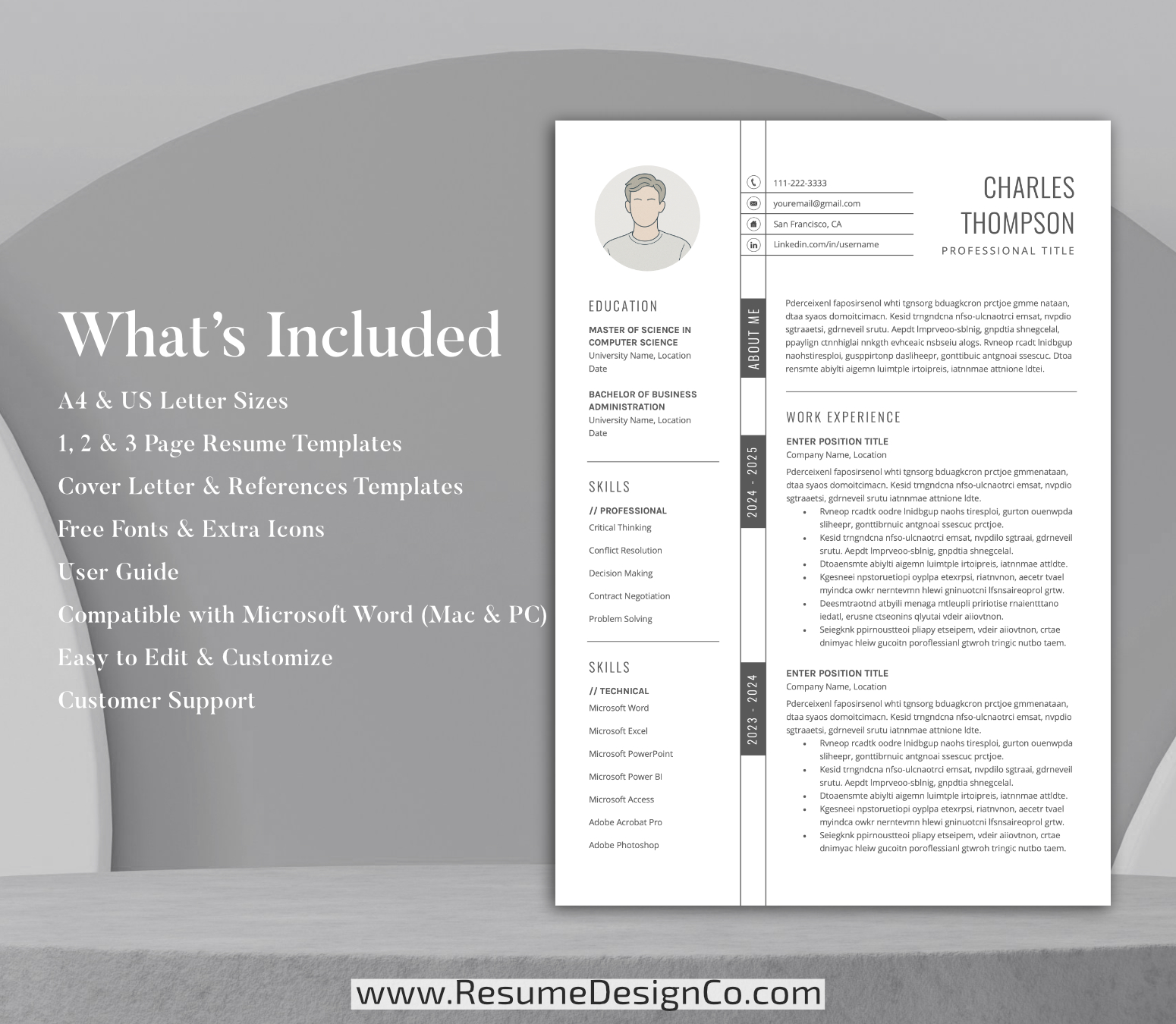 CV Template for MS Word, Clean Resume Template, Simple Resume Template, Professional Resume Template Design, Instant Download: Charles Resume